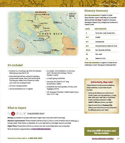 Costa Rica: Natural Parks & Tropical Forests Information & Reservations 1-800-955-1925 www.oattravel.com/ bcr 261