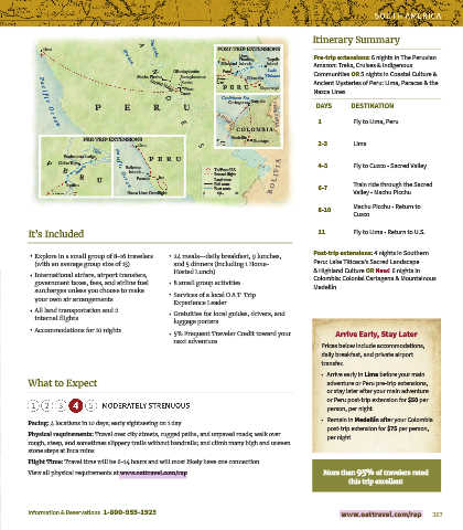 Real A ordable Peru Information & Reservations 1-800-955-1925 www.oattravel.com/ rap 267