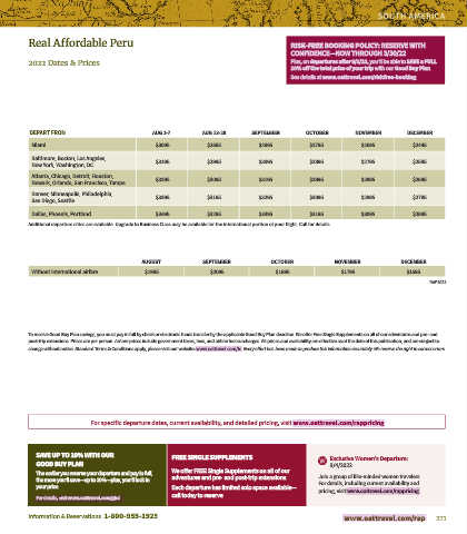 post-trip extensions. Prices are per person. Airfare prices include government taxes, fees, and airline fuel surcharges. All prices and availability are effective as of the date of this publication, and are subject to