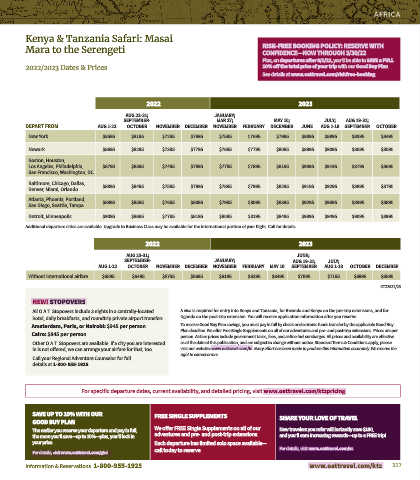 Learn more at www.oattravel.com/ktz-kenya Additional departure cities are available. Upgrade to Business Class may be available for the international portion of your flight. Call for details.