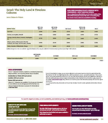 For specific departure dates, current availability, and detailed pricing, visit www.oattravel.com/isr pricing