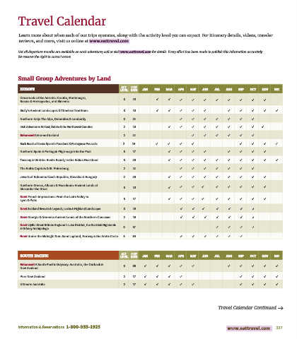 Learn more about when each of our trips operates, along with the activity level you can expect. For itinerary details, videos, traveler