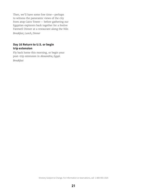 Itinerary Subject to Change. For Information or reservations, call 1-800-955-1925