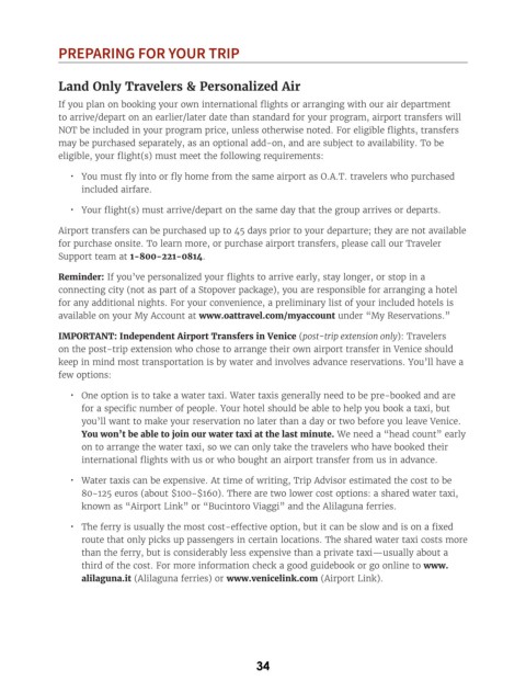 IMPORTANT: Independent Airport Transfers in Venice (post-trip extension only): Travelers