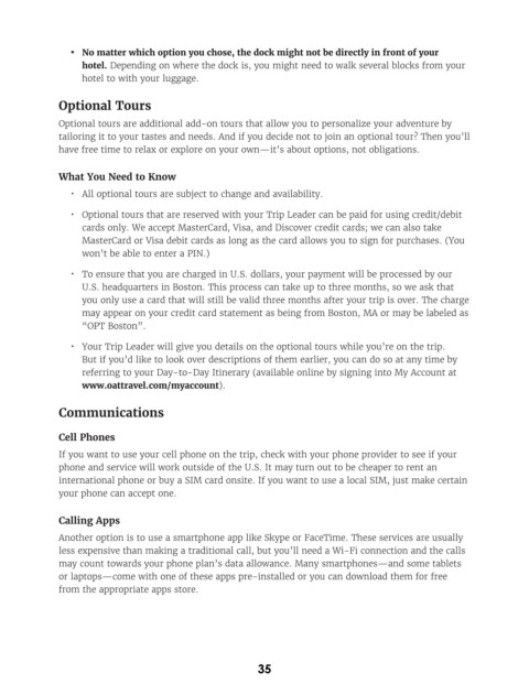 • Optional tours that are reserved with your Trip Leader can be paid for using credit/debit