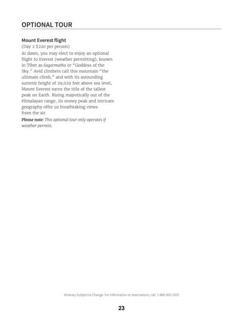 Itinerary Subject to Change. For Information or reservations, call 1-800-955-1925