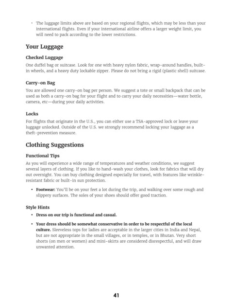 • Dress on our trip is functional and casual.