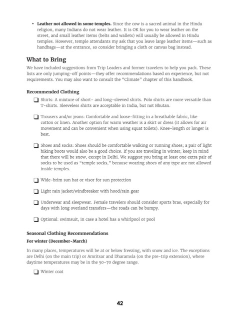 We have included suggestions from Trip Leaders and former travelers to help you pack. These