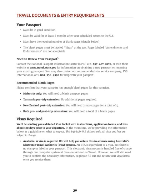 • New Zealand post-trip extension: You will need 2 more pages for a total of 4.