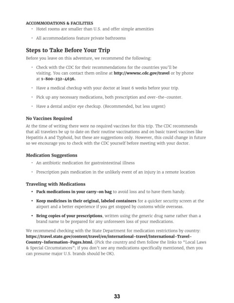 • Prescription pain medication in the unlikely event of an injury in a remote location