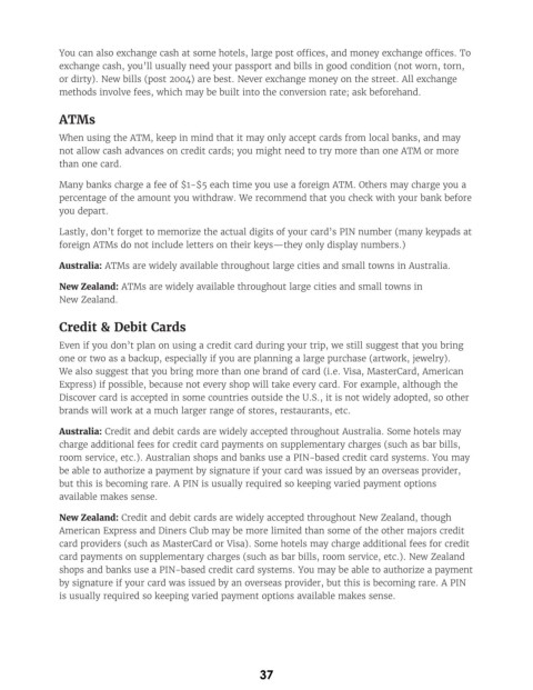 New Zealand: Credit and debit cards are widely accepted throughout New Zealand, though