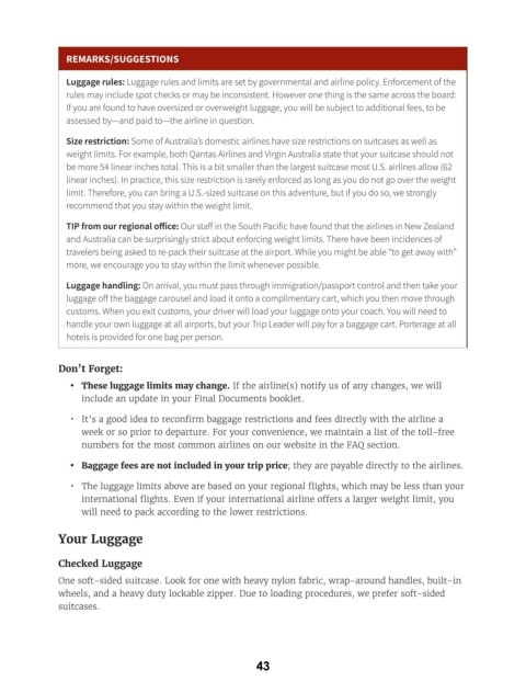 limit. Therefore, you can bring a U.S.-sized suitcase on this adventure, but if you do so, we strongly