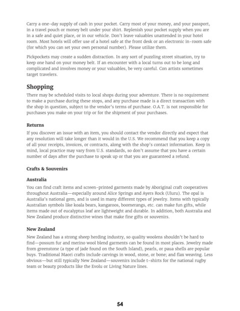 There may be scheduled visits to local shops during your adventure. There is no requirement