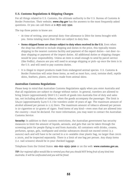 Telephone from the United States: 011-612-9313-3010 or on the web: www.customs.gov.au.