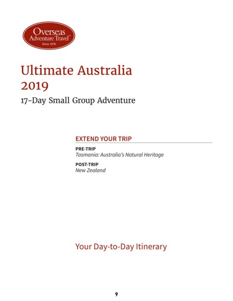 Overseas Adventure Travel SM Since 1978 Ultimate Australia 2019 17-Day Small Group Adventure EXTEND YOUR TRIP PRE-TRIP Tasmania: Australia’s Natural Heritage POST-TRIP New Zealand Your Day-to-Day Itinerary 9