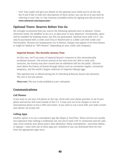 • Your Trip Leader will give you details on the optional tours while you’re on the trip.