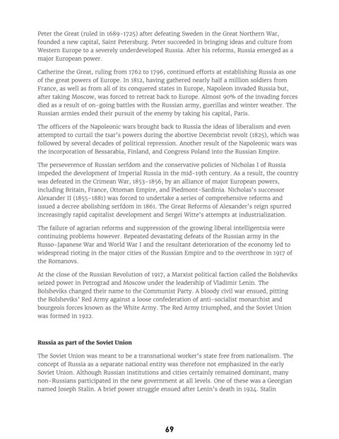Soviet Union. Although Russian institutions and cities certainly remained dominant, many