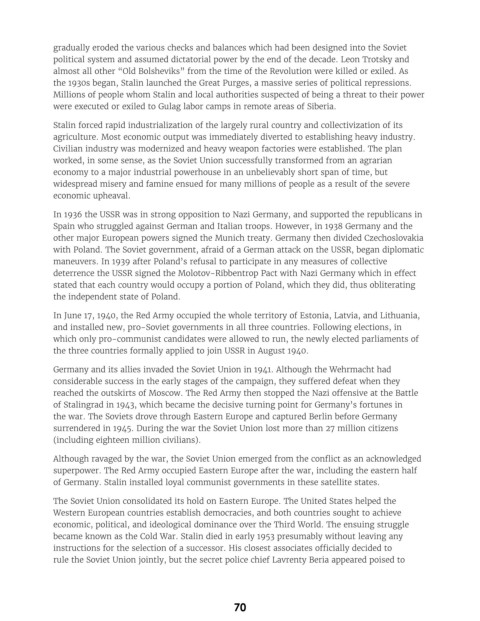 The Soviet Union consolidated its hold on Eastern Europe. The United States helped the
