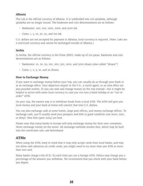 U.S. dollars are not accepted for payment in Albania; local currency is required. (Note: Leks are