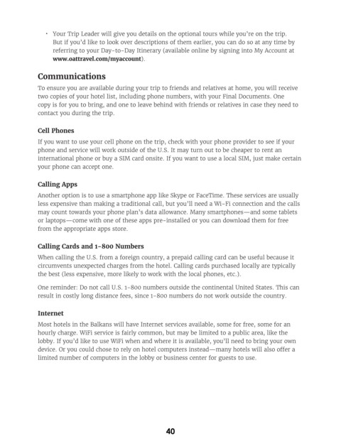 • Your Trip Leader will give you details on the optional tours while you’re on the trip.