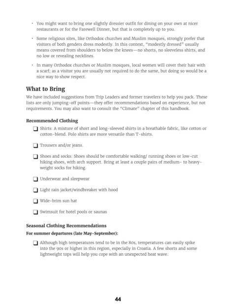 We have included suggestions from Trip Leaders and former travelers to help you pack. These