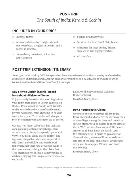 » Accommodations for 2 nights aboard » Services of a local O.A.T. Trip Leader