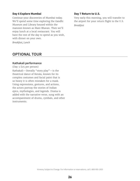 Day 6 Explore Mumbai Day 7 Return to U.S.