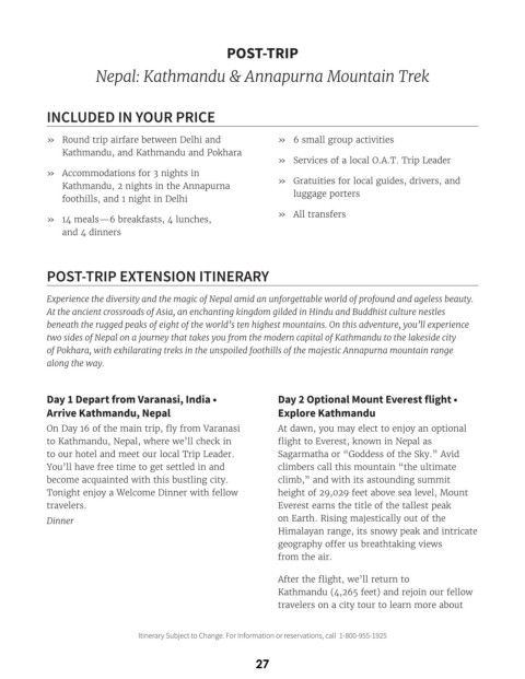 Day 1 Depart from Varanasi, India • Day 2 Optional Mount Everest flight •
