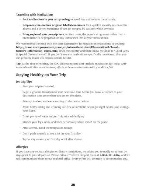 • Pack medications in your carry-on bag to avoid loss and to have them handy.