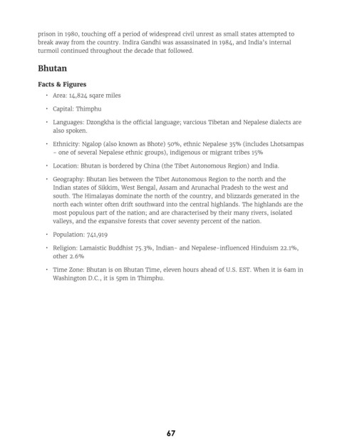 • Geography: Bhutan lies between the Tibet Autonomous Region to the north and the