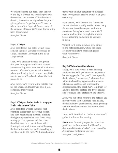 glitzy galleries. Or, perhaps you’ll elect to Upon arrival, we’ll drive to the famous Ise