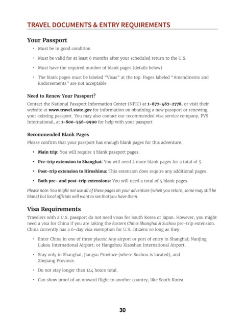 • Pre-trip extension to Shanghai: You will need 2 more blank pages for a total of 5.