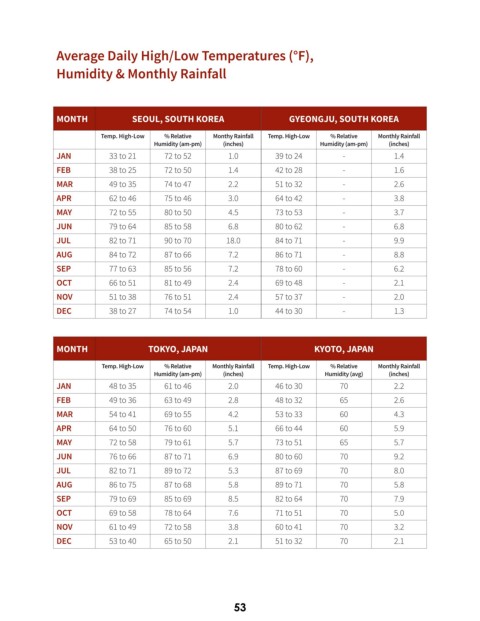 Temp. High-Low % Relative Monthy Rainfall Temp. High-Low % Relative Monthly Rainfall