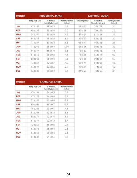 Temp. High-Low % Relative Monthly Rainfall Temp. High-Low % Relative Monthly Rainfall