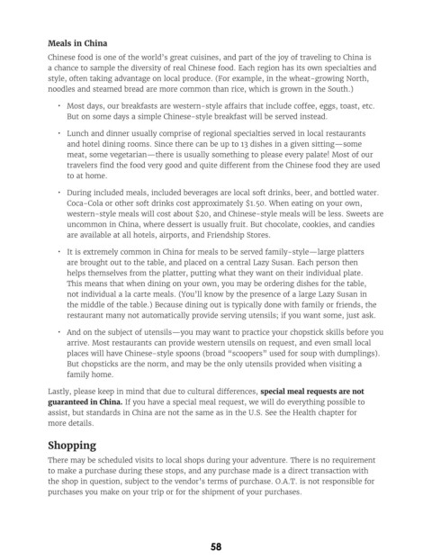 guaranteed in China. If you have a special meal request, we will do everything possible to