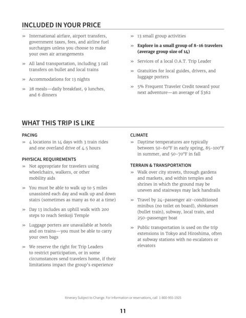 stairs (sometimes as many as 60 at a time) » Travel by 24-passenger air-conditioned
