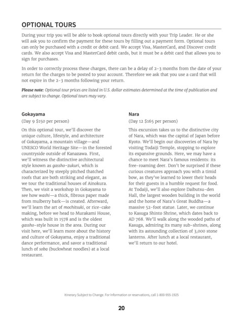 Please note: Optional tour prices are listed in U.S. dollar estimates determined at the time of publication and