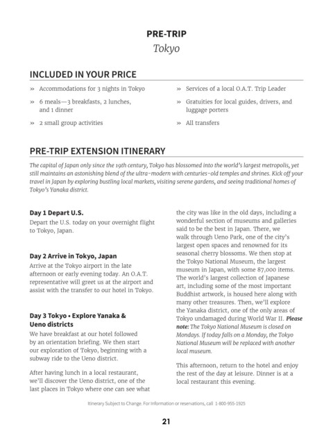 Itinerary Subject to Change. For Information or reservations, call 1-800-955-1925