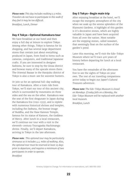 Please note: This day includes walking 5.5 miles. Day 5 Tokyo • Begin main trip