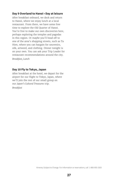 Itinerary Subject to Change. For Information or reservations, call 1-800-955-1925