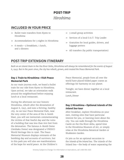 3T]Z^STXL ]PM`TW_ LQ_P] _SP OPaL^_L_TZY ZQ Day 2 Hiroshima • Optional Islands of the