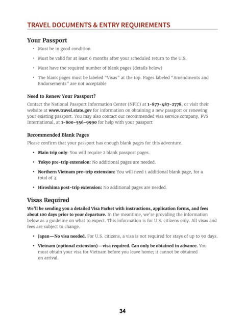 • Northern Vietnam pre-trip extension: You will need 1 additional blank page, for a
