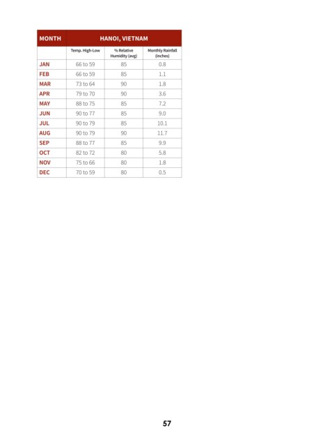 Temp. High-Low % Relative Monthly Rainfall