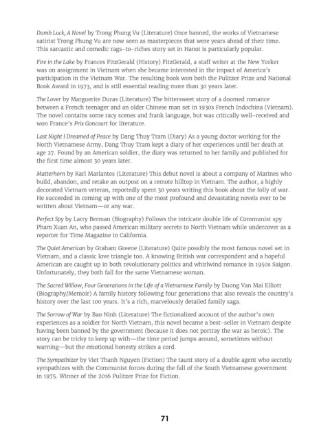 The Quiet American by Graham Greene (Literature) Quite possibly the most famous novel set in