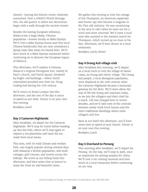 This area, with its mild climate and verdant Day 5 Overland to Penang