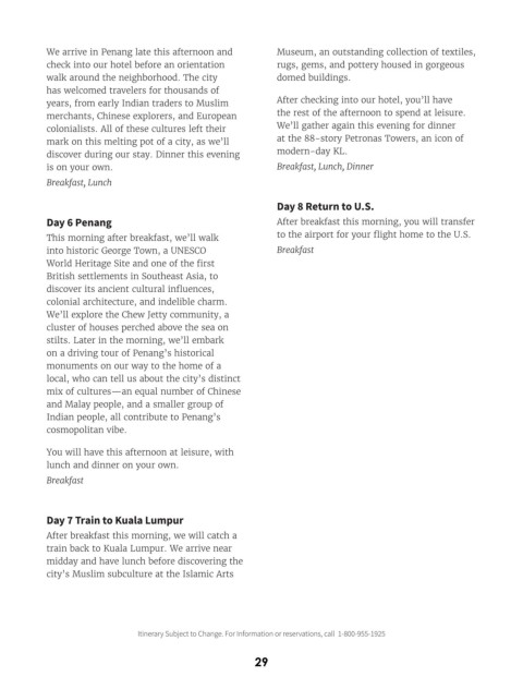 Itinerary Subject to Change. For Information or reservations, call 1-800-955-1925