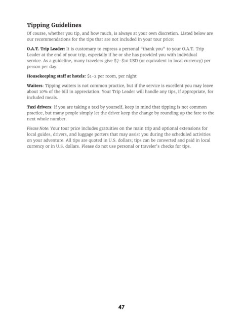 on your adventure. All tips are quoted in U.S. dollars; tips can be converted and paid in local