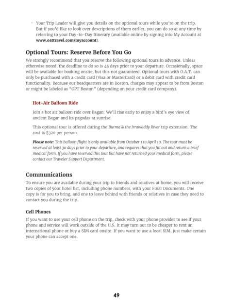 • Your Trip Leader will give you details on the optional tours while you’re on the trip.