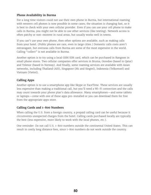 calls in Burma, you might not be able to use other services (like texting). Network access is