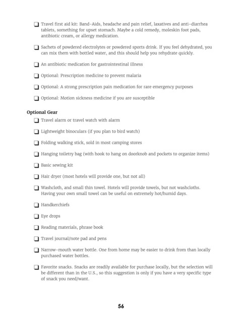 tablets, something for upset stomach. Maybe a cold remedy, moleskin foot pads,